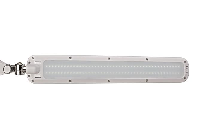 Speciális, nagy felületű, egyenletes megvilágítást biztosít, professzionális munkaasztalok számára. Fokozatmentes fényerő-szabályozás, diffúzorlemezzel az egyenletes és csillogásmentes megvilágításért. Stabil, rögzítő szerkezet acél súlybetéttel (nehezékként funkcionál), a fémkar rozsdamentes acélcsőből készült, belső rugóval rendelkezik.