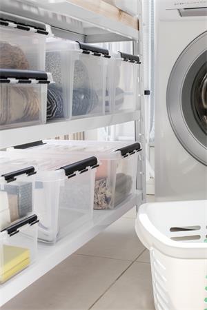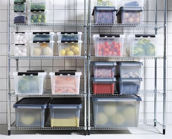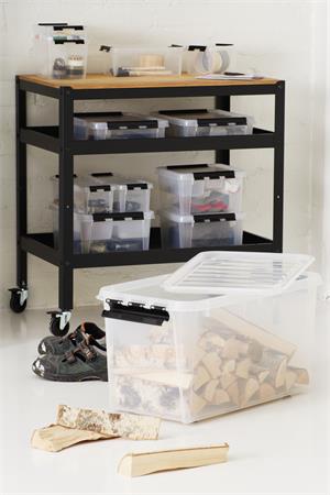 Műanyag tárolódoboz, 14 liter, fekete fogantyúkkal, SMARTSTORE "Classic 15", átlátszó