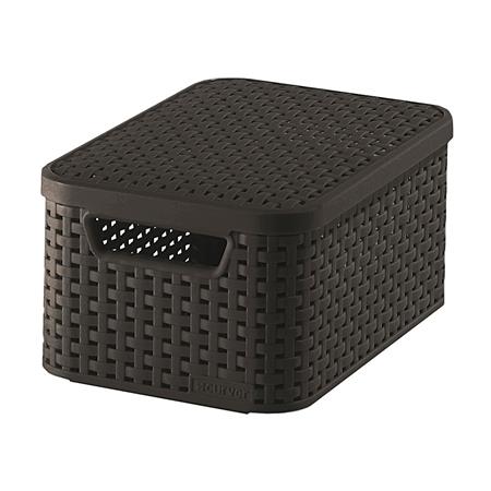 KezdőlapIrodaszerekCsomagolás, tárolásTárolódobozok, ládák és kosarakRattan hatású kosár tetővel, 6l, barna, CURVER, "Style S"