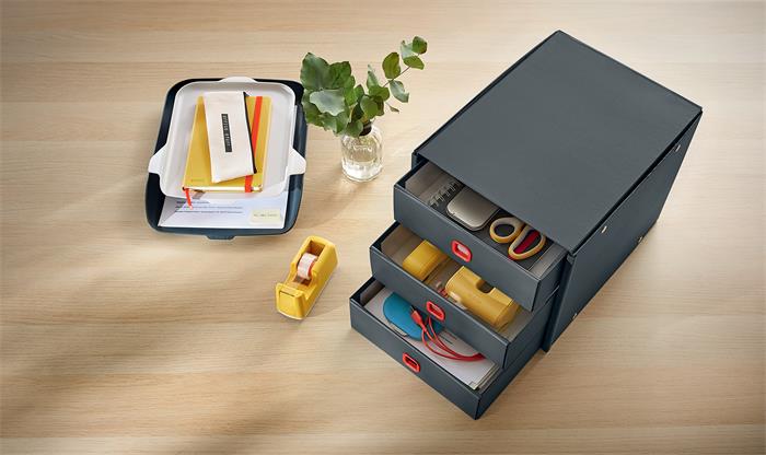 -a praktikus, piros kihúzólyukkal rendelkező Click & Store Cosy fiókos irattartó tökéletes A4 méretű dokumentumok, újságok, katalógusok rendszerezéséhez