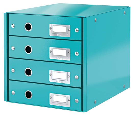 Irattároló, laminált karton, 4 fiókos, LEITZ "Click&Store", jégkék