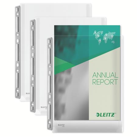 A nagy kapacitású lefűzhető tasakok ideálisak terjedelmesebb dokumentumokhoz és katalógusokhoz otthoni, irodai vagy iskolai környezetben. Kényelmes dokumentumtárolást biztosít, felül és jobb oldalon nyitott, így a tartalma könnyen hozzáférhető. Erős, fém, univerzális, 6 lyukú lefűzőrésszel rendelkezik, amely még a nehéz dokumentumokat is a helyén tartja. Akár 200 A4-es papírlap tárolásához is alkalmas, és kiváló minőségének köszönhetően többször újra felhasználható. A savmentes anyag biztosítja a dokumentumok védelmét, az átlátszó, tükröződésmentes kivitel - a tartalom könnyű olvashatóságát. PVC (polivinil-klorid) műanyagból készül, 48%-ban UL által auditált és tanúsított újrahasznosítottanyag-tartalommal.