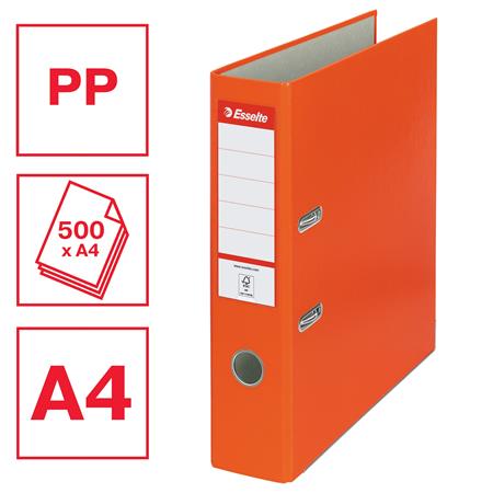 KezdőlapIrodaszerekIratrendezés, archiválásIratrendezőkIratrendező, 75 mm, A4, PP/karton, élvédő sínnel, ESSELTE "Economy", narancssárga