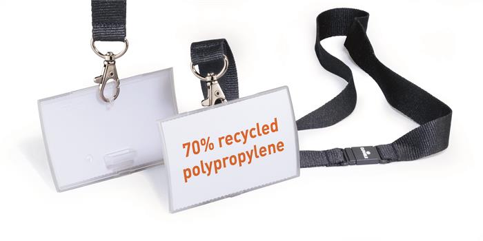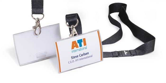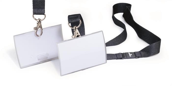 Névkitűző, nyakbaakasztóval, 54x90 mm, DURABLE "CLICK FOLD", áttetsző