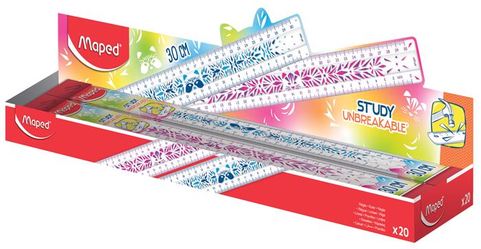 Vonalzó, műanyag, törhetetlen, 30 cm, MAPED "Study Unbreakable Fancy", vegyes színek