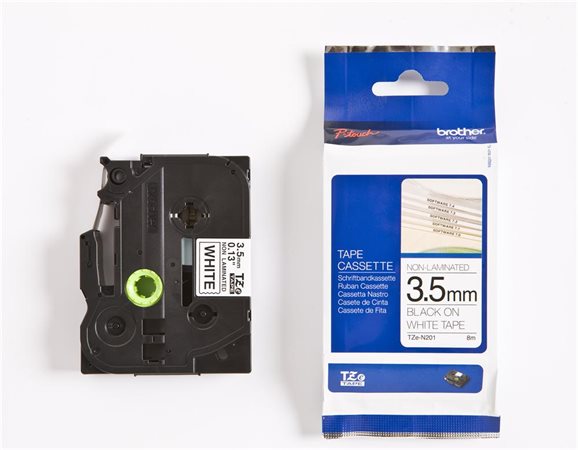 Feliratozógép szalag, matt, 3,5 mm x 8 m, BROTHER, "TZe-N201" fehér-fekete