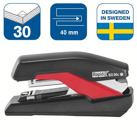 Tűzőgép, 30 lap, lapos tűzés, RAPID "Supreme OmniPress S030c", fekete/piros