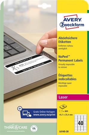 Felragasztás után a címkék csak apró darabokban távolíthatóak el, mindennemű eltávolítási kísérlet azonnal nyilvánvalóvá válik, így megelőzhető az esetleg csalás vagy lopás.