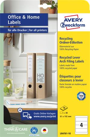 KezdőlapIrodaszerekIrodai papíráruEtikettekIratrendező etikett, univerzális, 61x192 mm, újrahasznosított, AVERY ZWECKFORM, 40 etikett/csomag