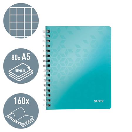Spirálfüzet, A5, kockás, 80 lap, LEITZ "Wow", jégkék