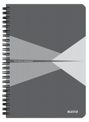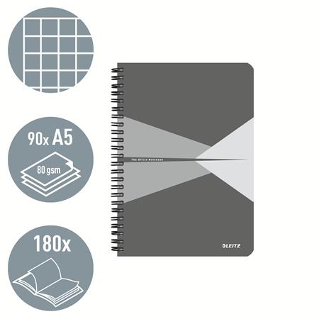 Spirálfüzet, A5, kockás, 90 lap, PP borító, LEITZ "Office", szürke