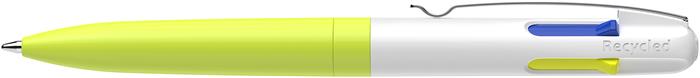 Golyóstoll, 0,5 mm, nyomógombos, négyszínű, SCHNEIDER "Take 4 Neon", sárga-fehér