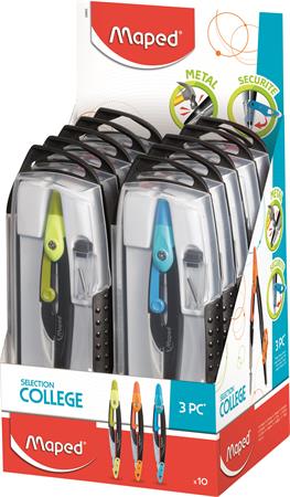 Körző készlet, 3 darabos, MAPED "Metal Open", vegyes színek
