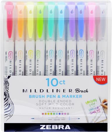 Ecsetirón készlet, 0,5/0,7 mm, kétvégű, ZEBRA "Mildliner Brush&Marker", 10 különböző szín