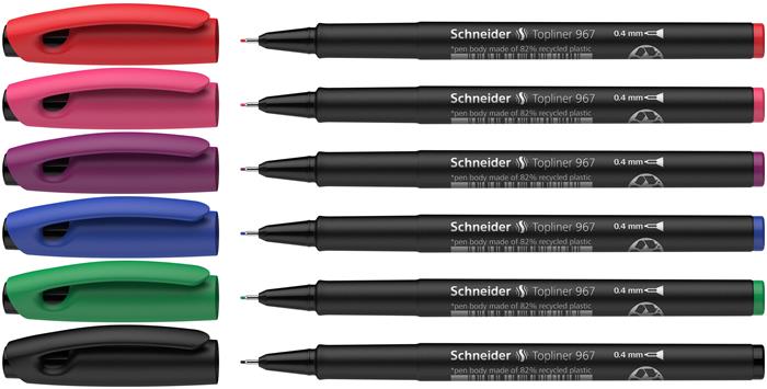 Tűfilc készlet, 0,4 mm, SCHNEIDER "Topliner 967", 6 különböző szín