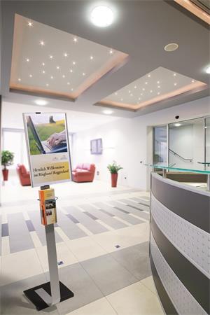 -felhasználási terület: recepciókon, vásárokon, előcsarnokokban és váróhelyiségekben információs állványként