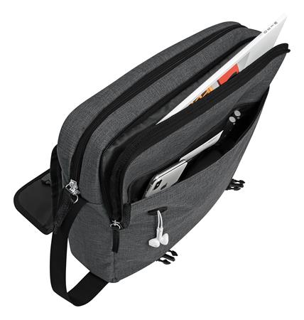 az elülső zseb rendelkezik kábelelvezetéssel, alkalmas okostelefonok, kártyák, tollak, stb. tárolására
