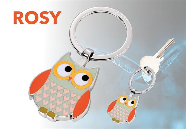 Akire csak Rosy szemet vet, elveszti a csatát. Kedves kis kulcstartó, fényes krómozott fémből, vidám pasztel árnyalatokkal.