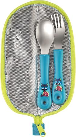 Evőeszközkészlet textil tartóban: villa, és kanál