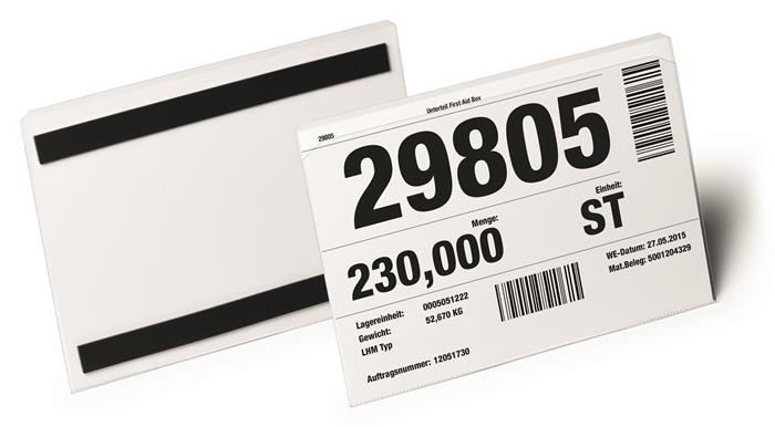 Átlátszó PET merev fóliából készült irattartó zseb két mágnescsíkkal a hátoldalon.