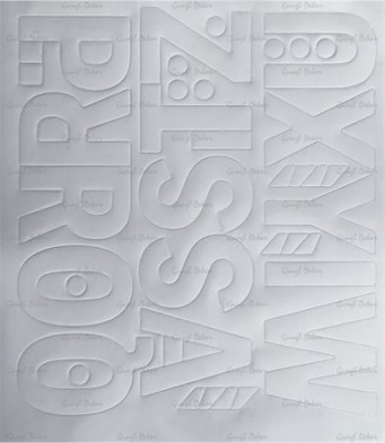 Öntapadós vinil tapétából hőpréssel stancolt betűlap.
