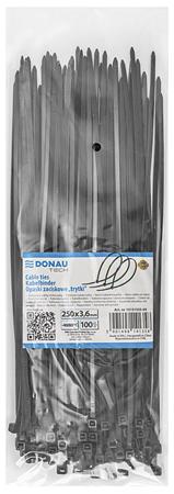 Kábelkötegelő, gyorskötöző, 3,6x250mm, DONAU "Tech", fekete